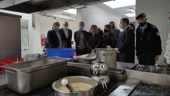 Justitsminister Nick Hækkerup på besøg i køkkenet i detentionscentret i Gjilan i Kosovo.