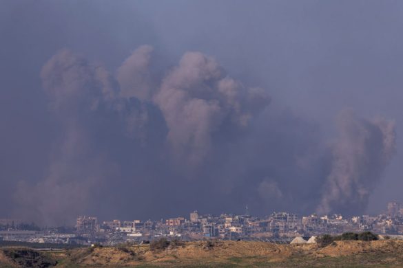 Røgskyer over det nordlige Gaza efter israelske angreb. Billedet er fra 17. december, hvor krigen har varet mere end to måneder.